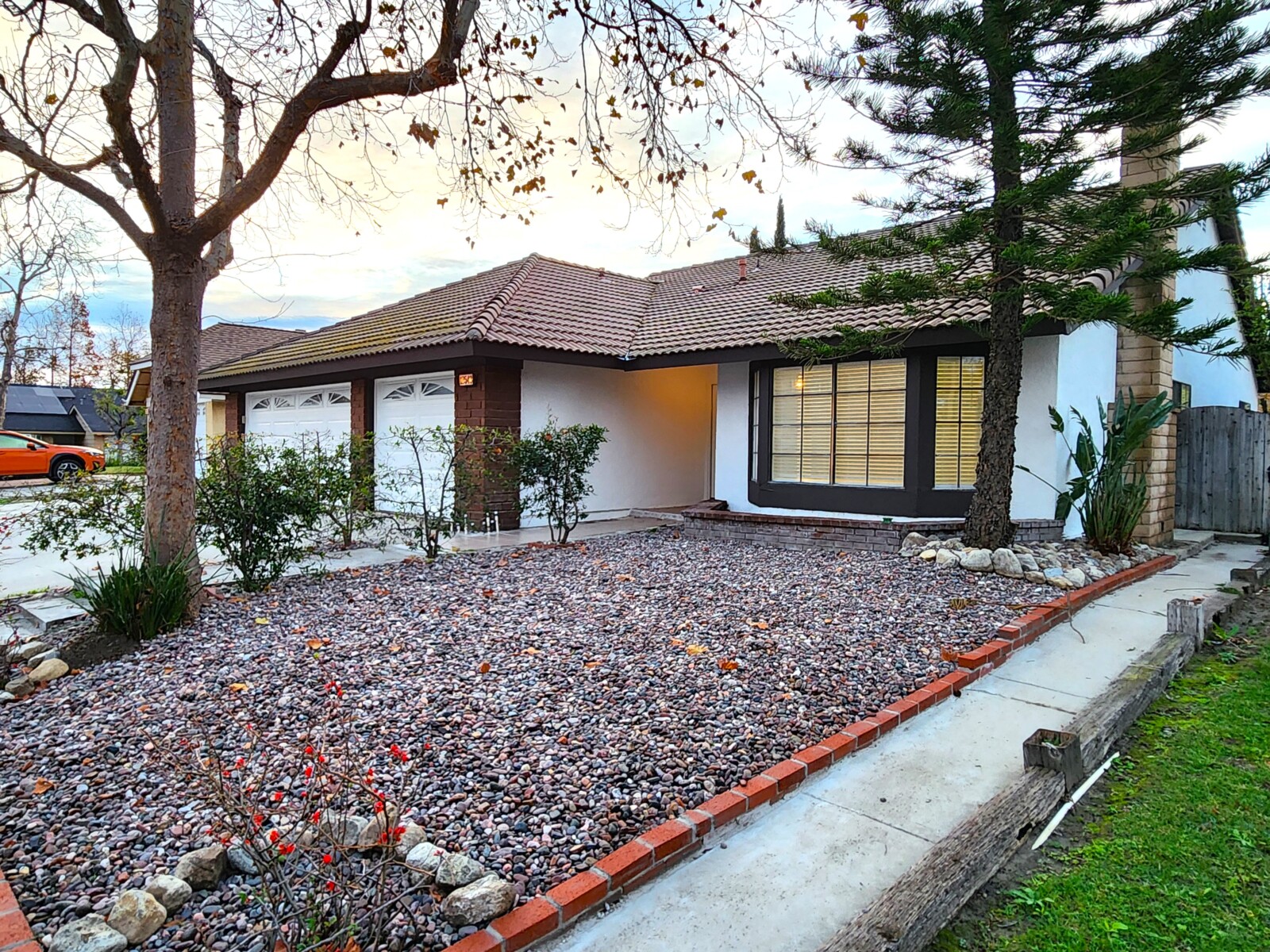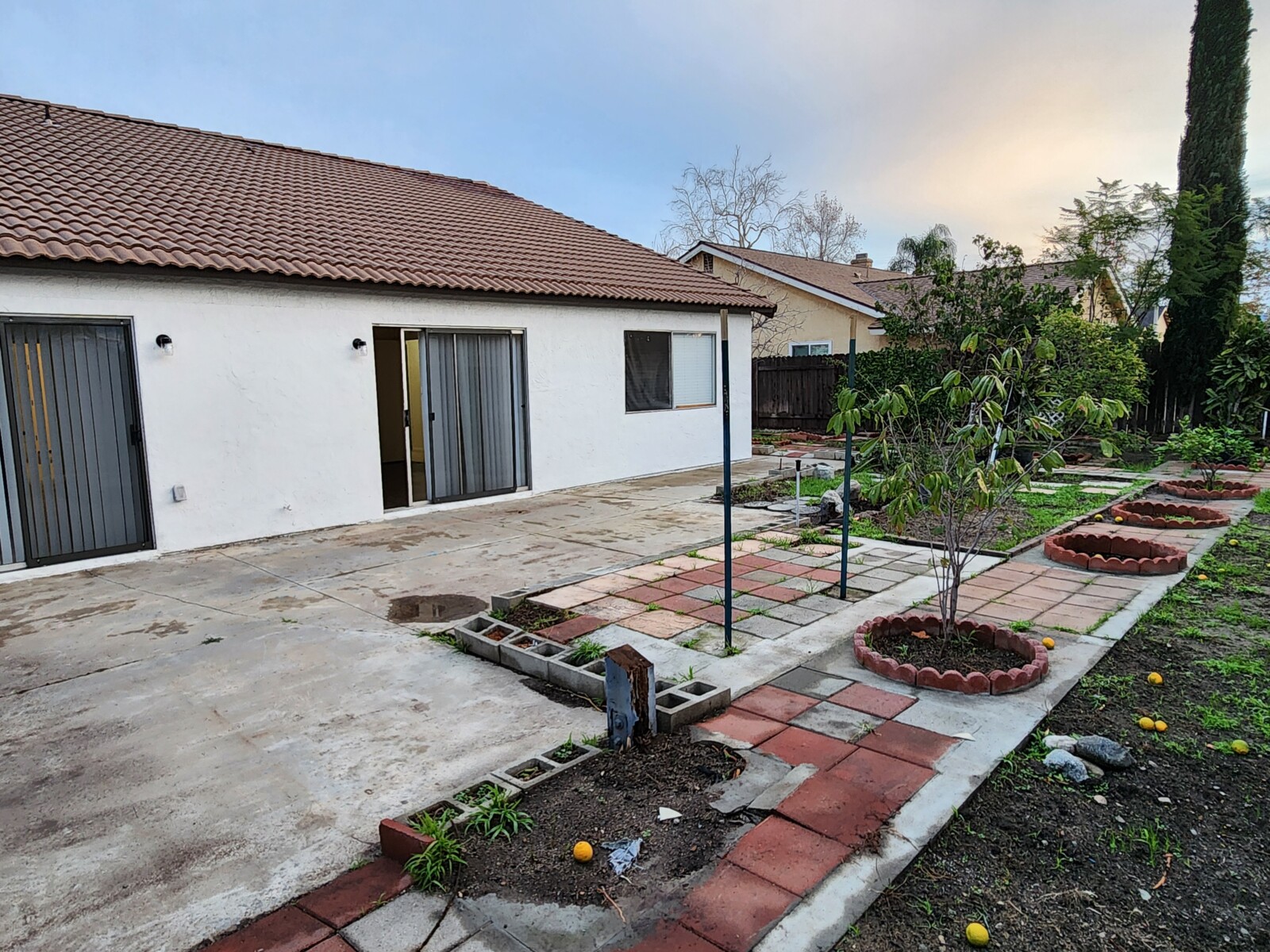 Drought tolerant front yard. Backyard with patio.