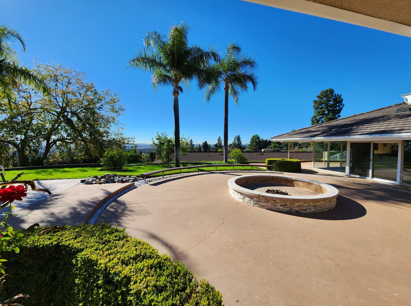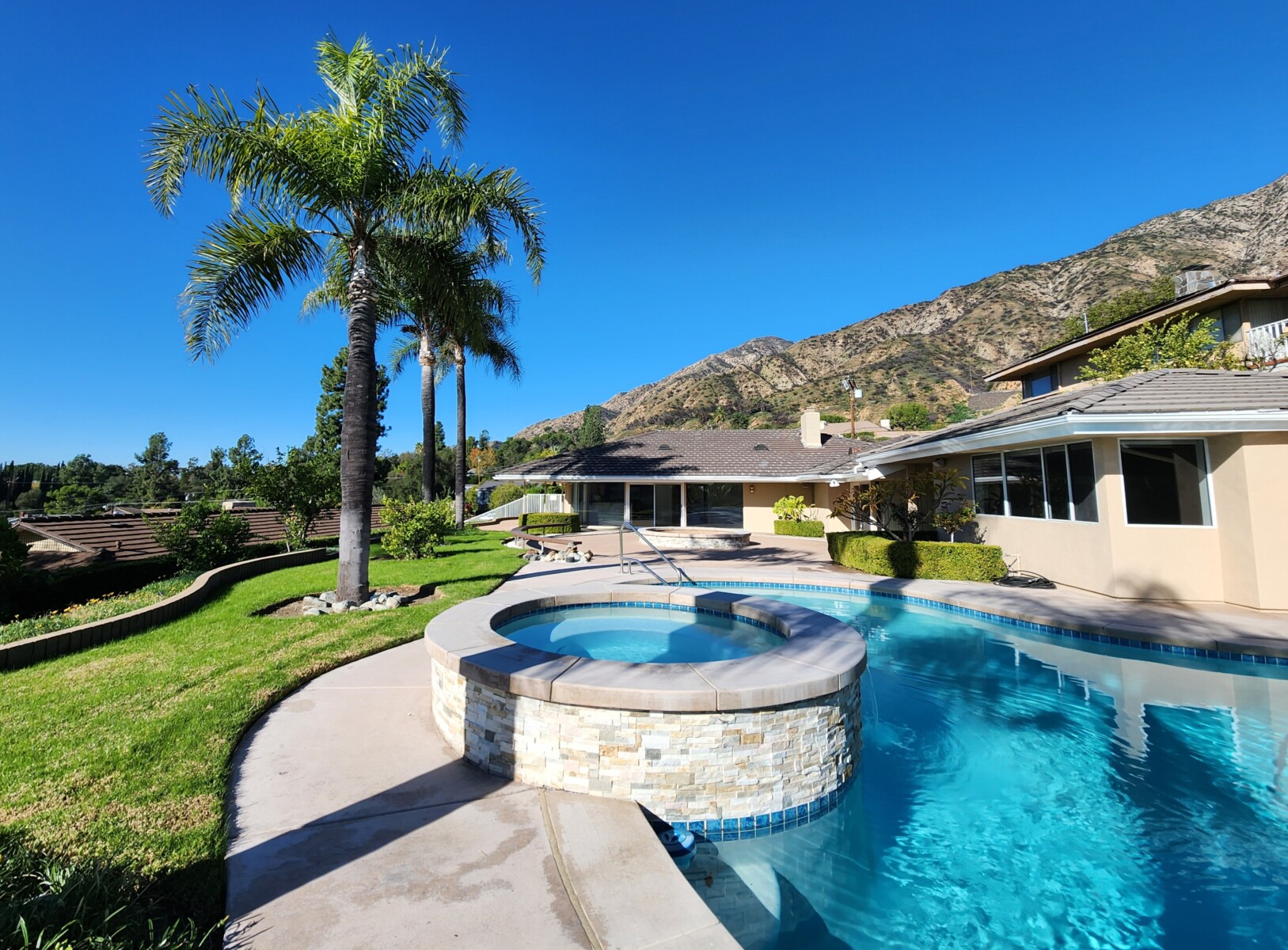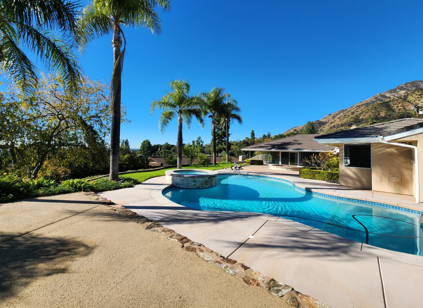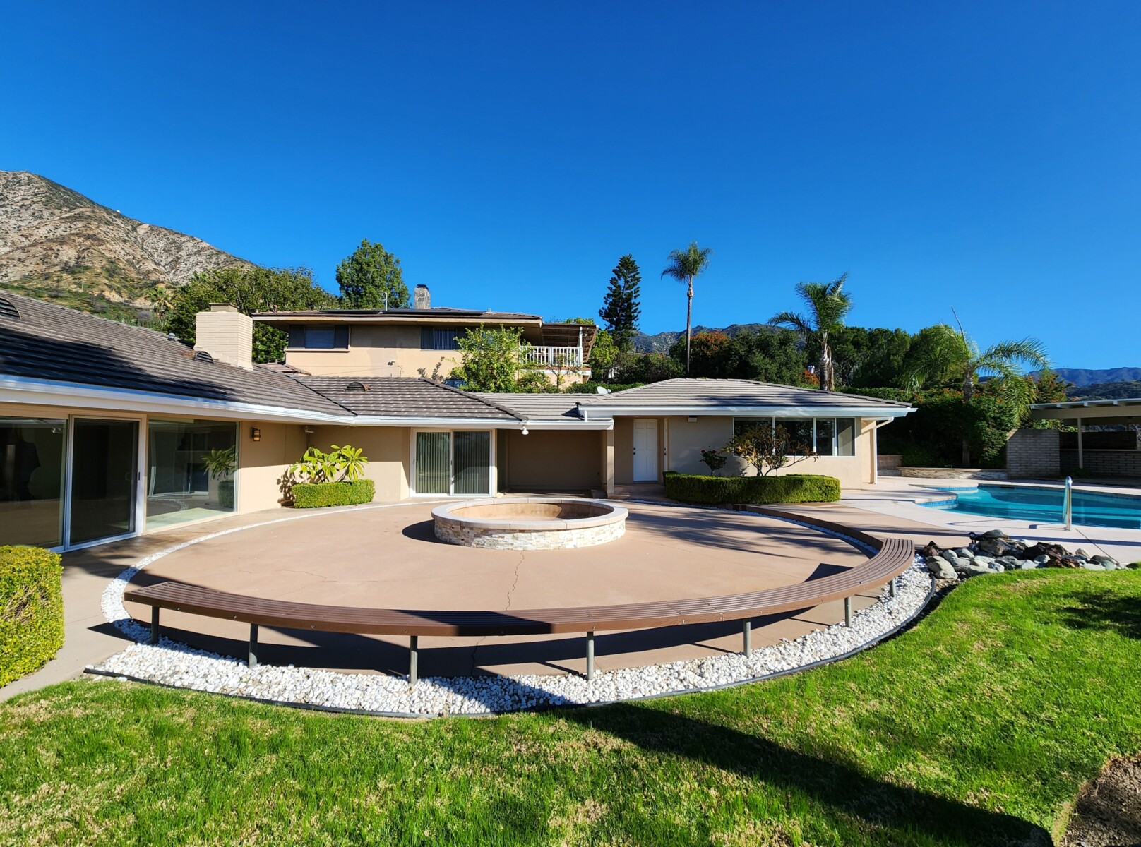 Enjoy the outdoors with a pool, spa, spacious gas fire pit, and a huge covered BBQ and dining area. The home also includes a dedicated laundry room with abundant storage, an oversized two-car garage, and additional covered breezeway parking. Mature landscaping with roses, palms, and citrus trees complete the setting. Located in the foothills, east of Santa Anita Ave.