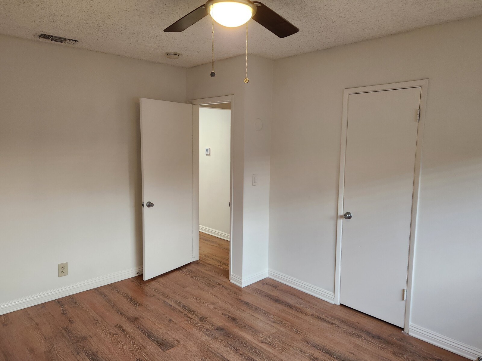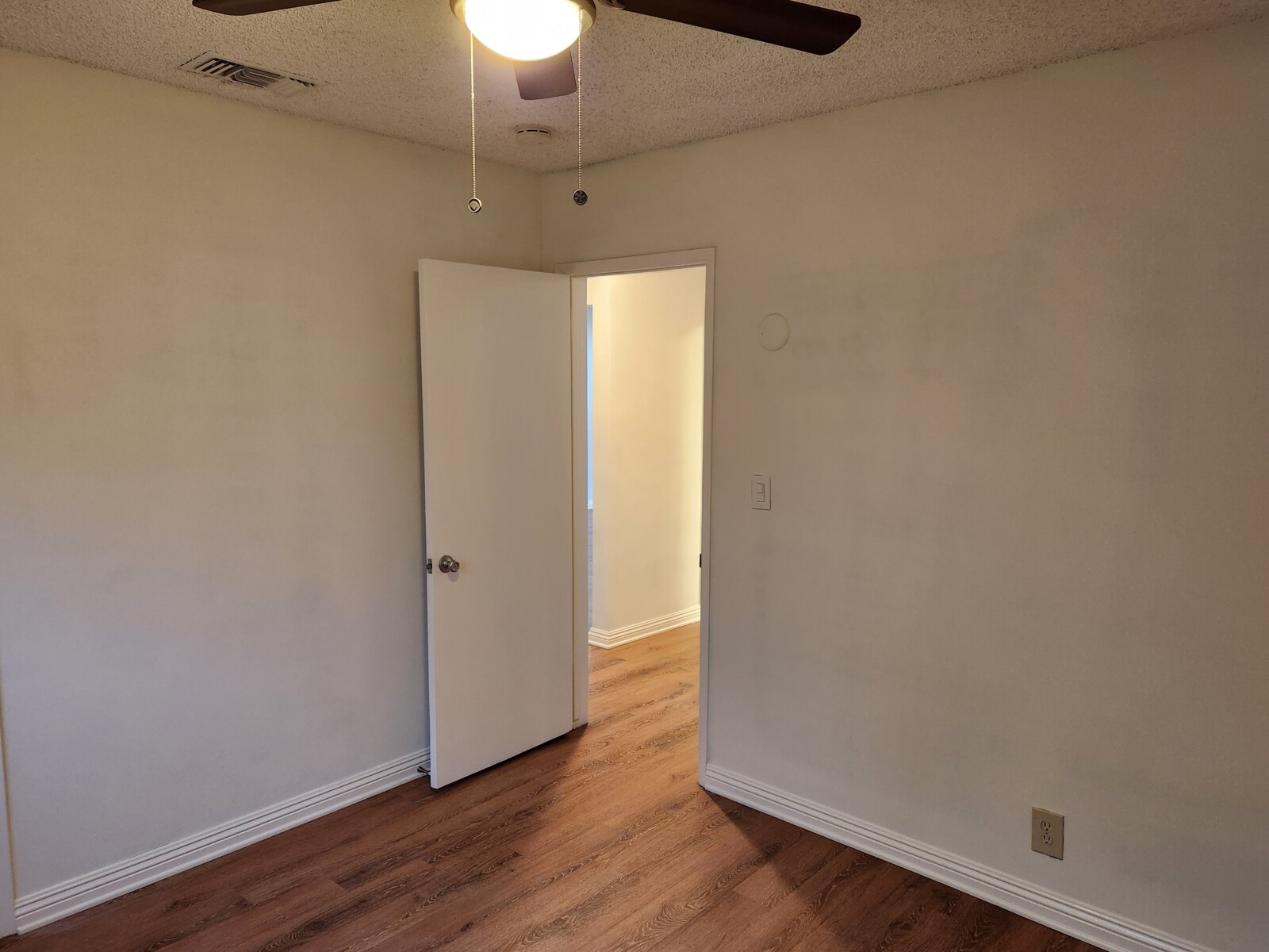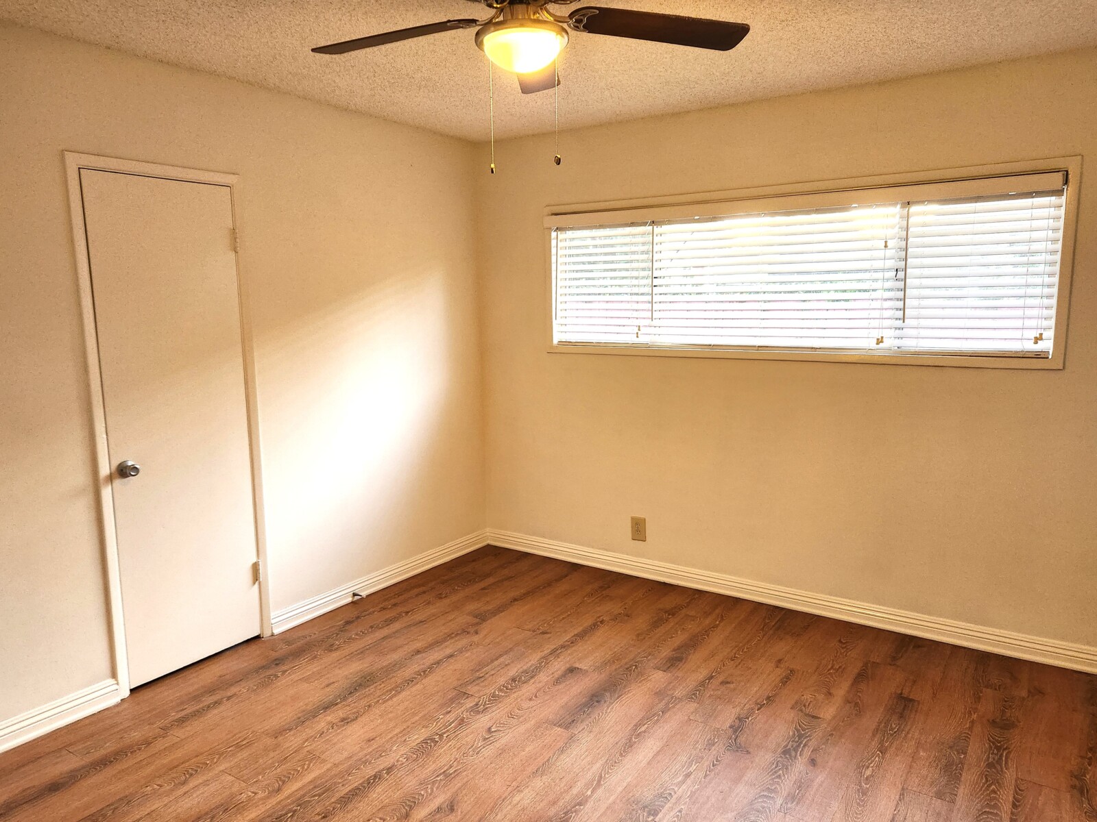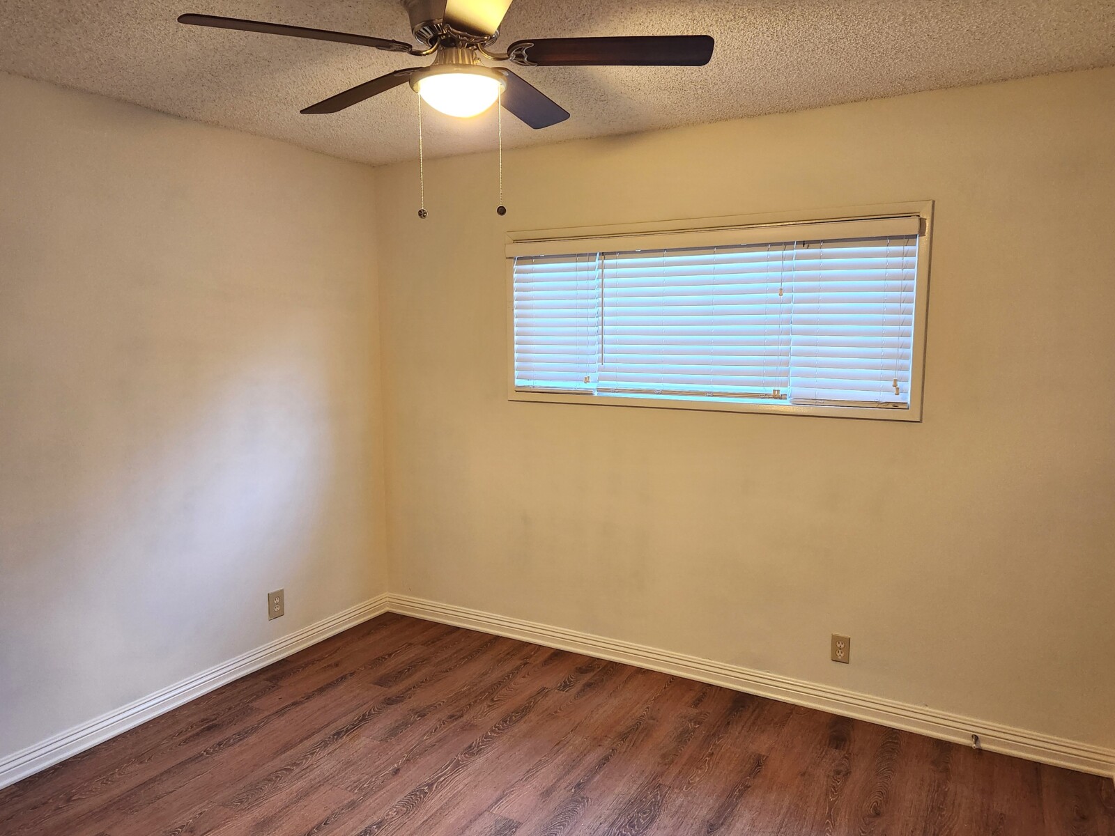Charming 2 bedroom, 1 bathroom back house in downtown La Verne. Wood style flooring throughout. Kitchen with stone countertops, stove and refrigerator. Eating area off the kitchen. Large living room. Both bedrooms have ceiling fans. Central heat and air conditioning. Alley access. No garage but there there is a private parking space and alley parking. Small fenced yard. 3 outside storage sheds one with laundry hook ups inside. Rent $2,050.00. Security Deposit $2,050.00. Total move in $4,100.00. Located between D street and White Ave., north of Bonita.