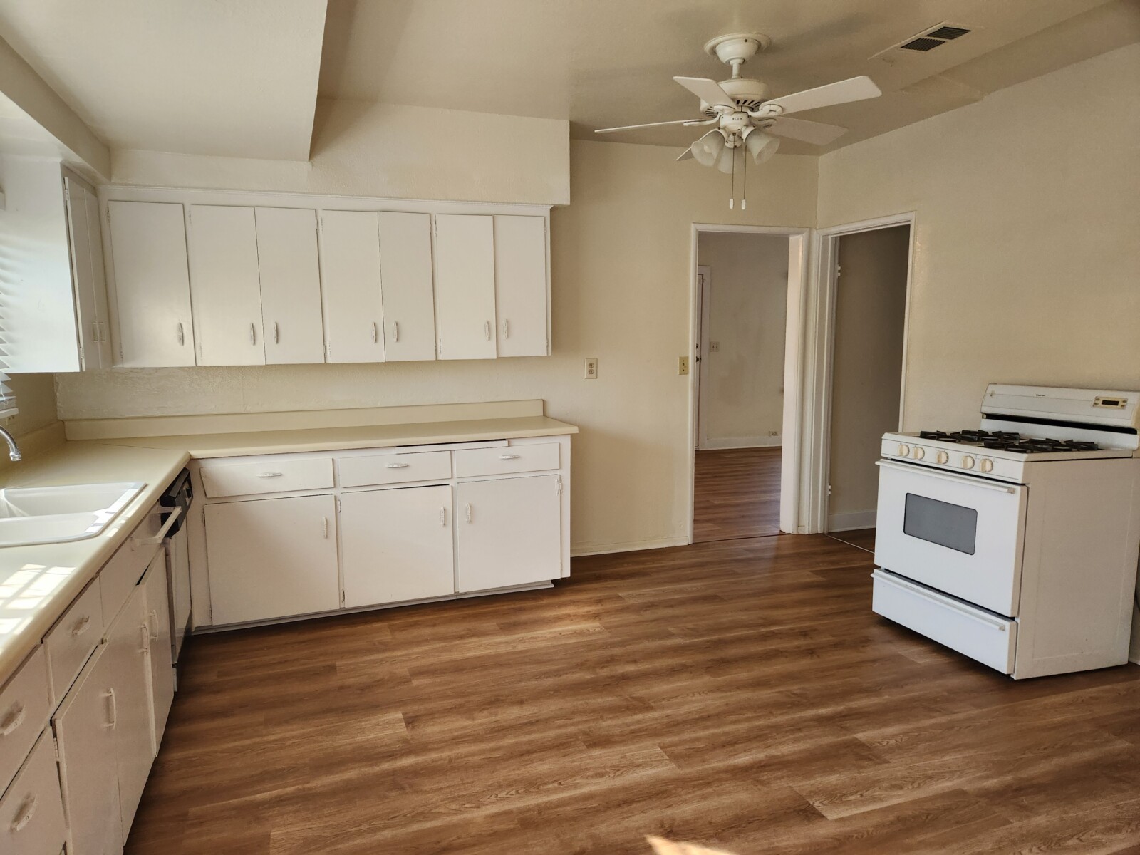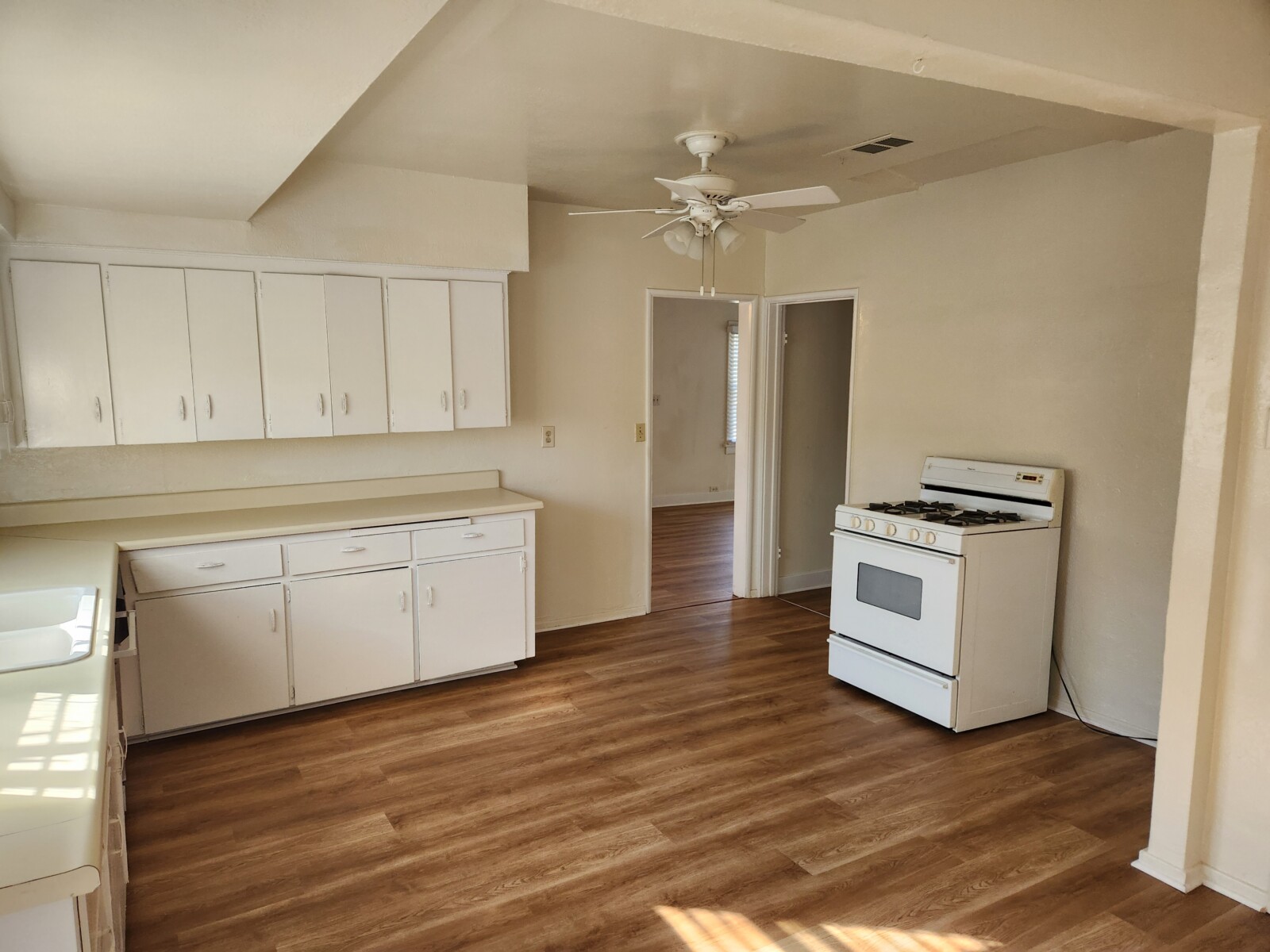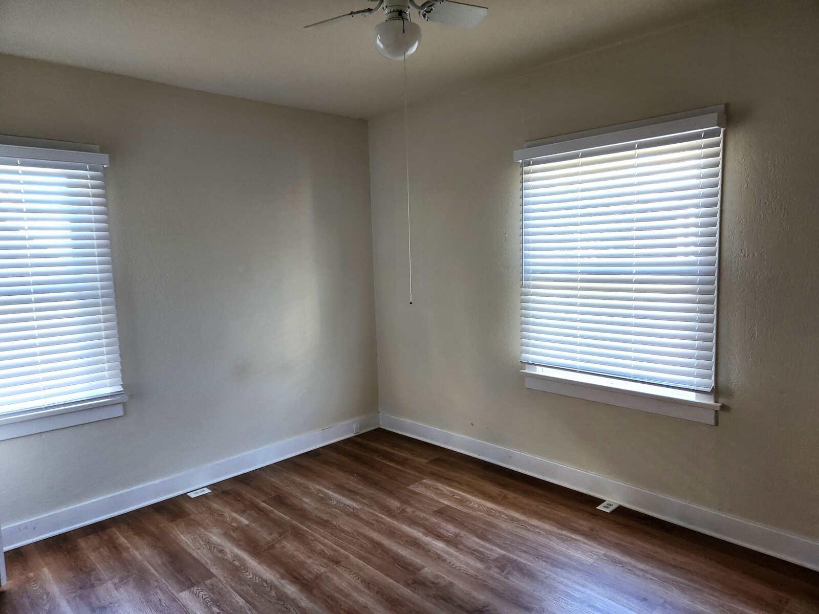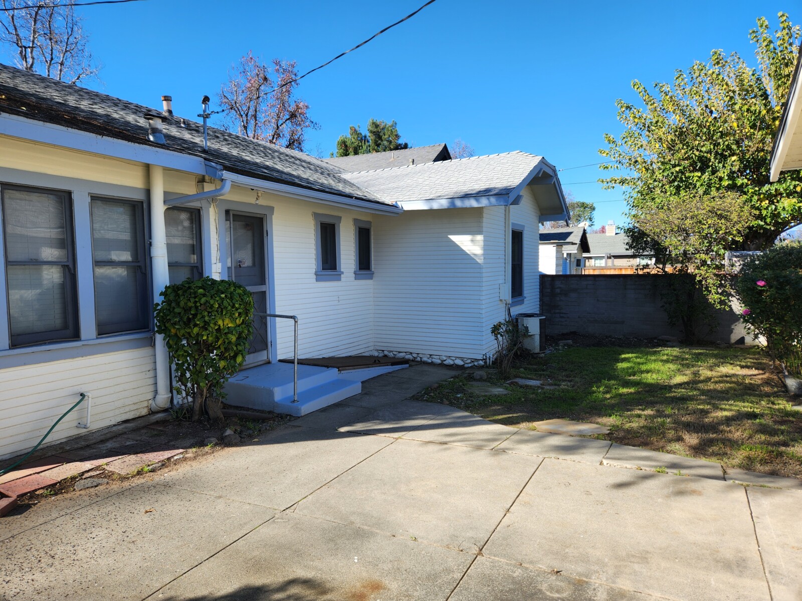 Craftsman style single story, single family home in downtown La Verne. 2 bedroom, 1 bathrom. New paint inside and out. New wood style flooring. New blinds. Central heat and AC. Large living room with a dining area at one end. Spacious kitchen with room for a kitchen table. Laundry hook-ups. 1 1/2 car garage. There are 2 houses on the lot. This is the front house. The back house has their own access from the alley. Rent $2,800.00. Security deopisit $2,800.00. Total Move in $5,600.00. Located noth of Bonita, west of White Ave.