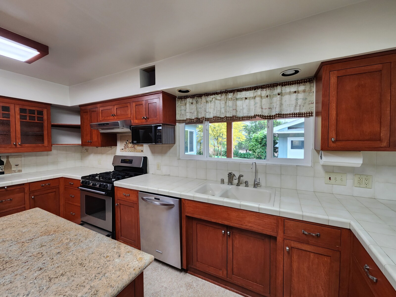 Situated on a 1/3-acre lot with mature trees and landscaping, the home features an eat-in kitchen with a custom banquette, unique tile-work in the kitchen and bathrooms, and woodwork adding warmth and character. 2 fireplaces. Large home office. Tankless water heater. Central heat and AC plus a whole house fan. A detached 3-car garage offers versatility, complete with laundry, a half bath, and additional shop or workspace—ideal for hobbies or a home project area. RV Parking. Covered patio. Solar panels keep electricty bills low. Gardener service is included for low-maintenance outdoor living.
