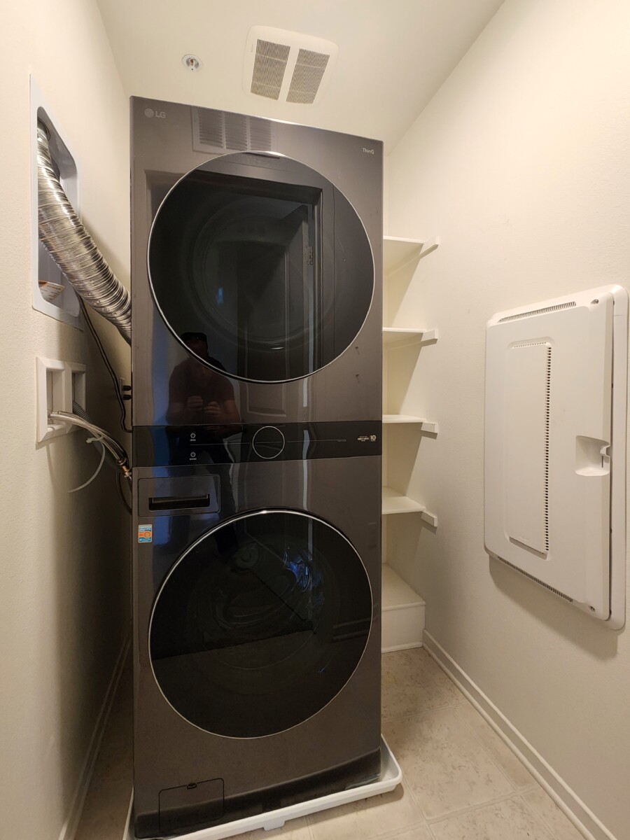 The upper level includes two bedrooms, each with its own full bathroom, as well as in-unit laundry.
